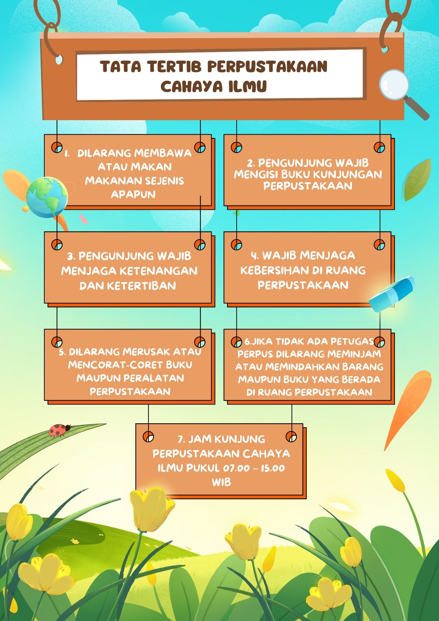 Deskripsi : Tata tertib perpustakaan SD Trowono I